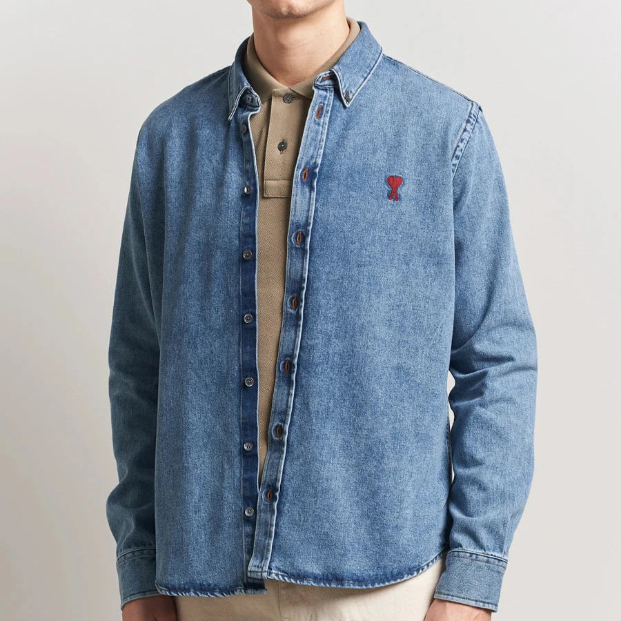 Step up your outerwear game with this Timeless Heart Patch Denim Shirt, crafted for those who appreciate effortless style with a bold touch. Featuring a relaxed fit, classic button-up design, and a standout heart-shaped patch, this denim piece brings together vintage vibes and modern street style.