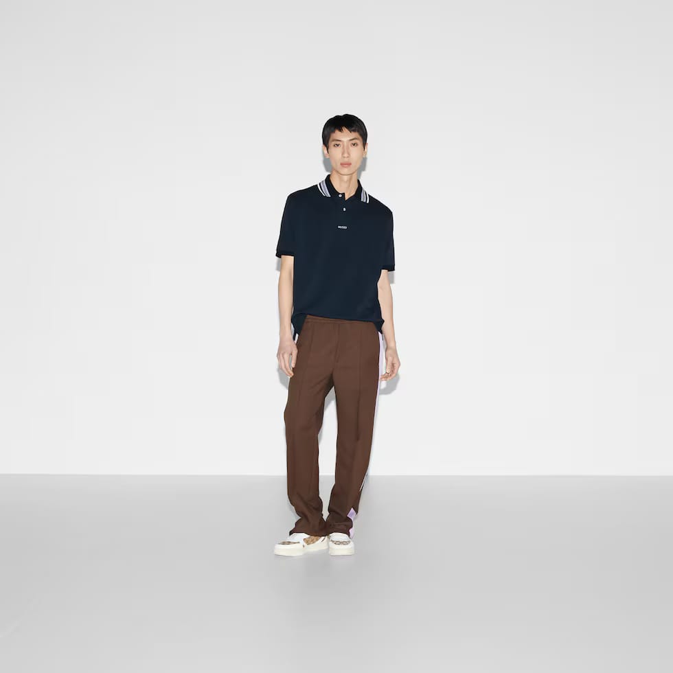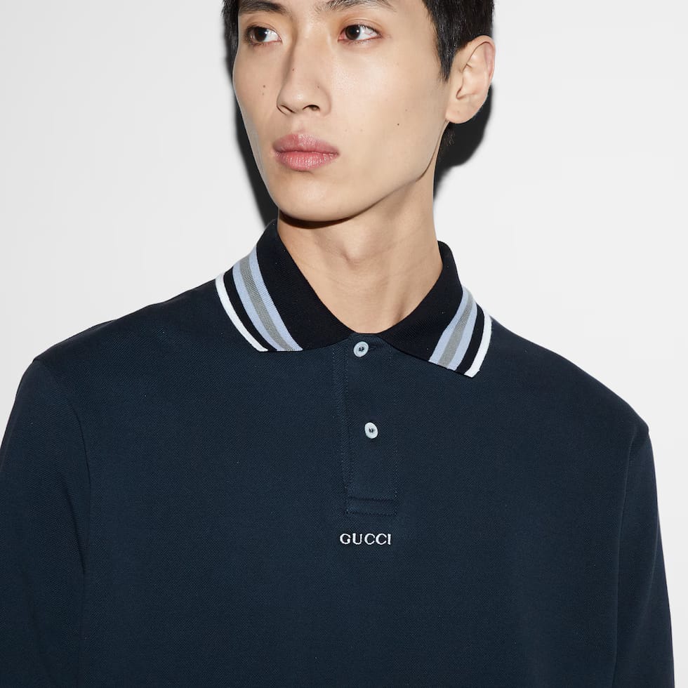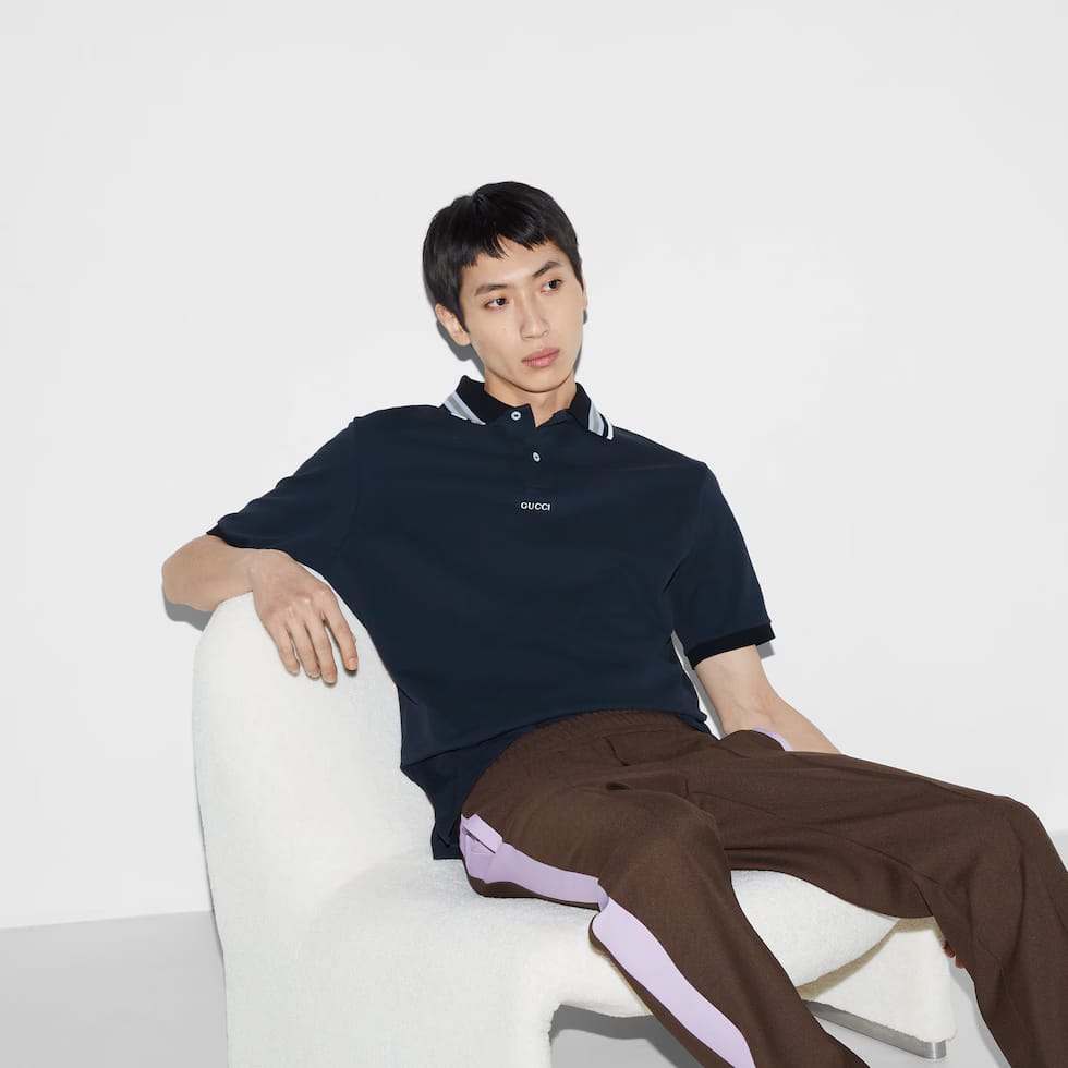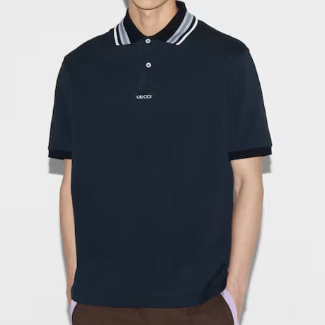 - Striped polo collar