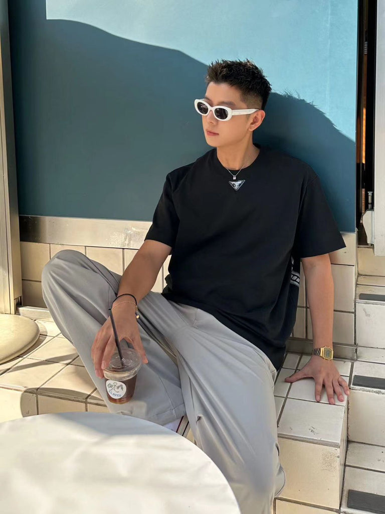 Collection from a well known brand. Cotton- Lycra mixed fabric highlighted with the embroidery of brand initial is the end of for your search for a basic casual attire to roam around in sunny day.