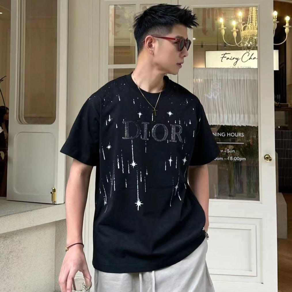 Latest Star Effect Drop Shoulder T-Shirt With Logo