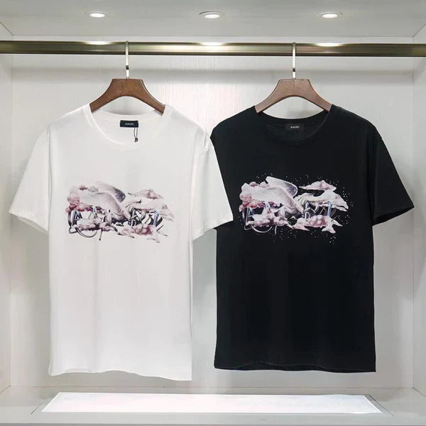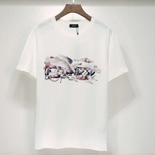 The white cotton t-shirt with brand printing on the chest is a stylish and comfortable garment that effortlessly combines fashion and functionality. Made from a blend of high-quality material.