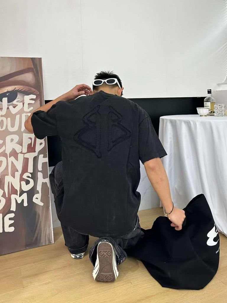 Embossed Brand Logo Regular Fit Drop Shoulder T-Shirt