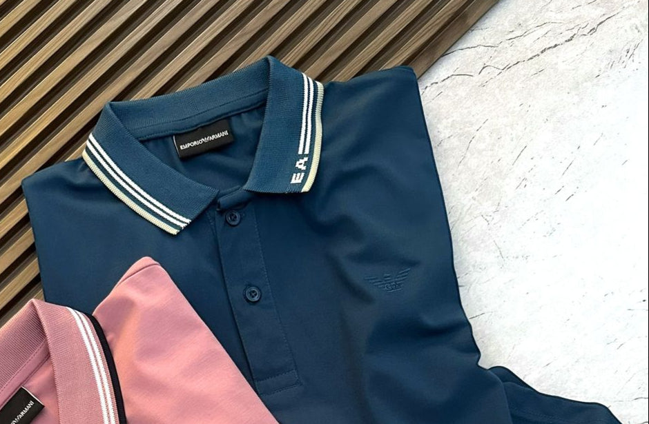 - Buttoned, Striped Polo Shirt Collar and Branding