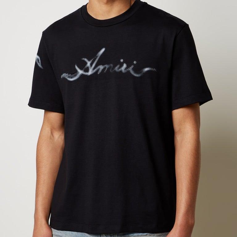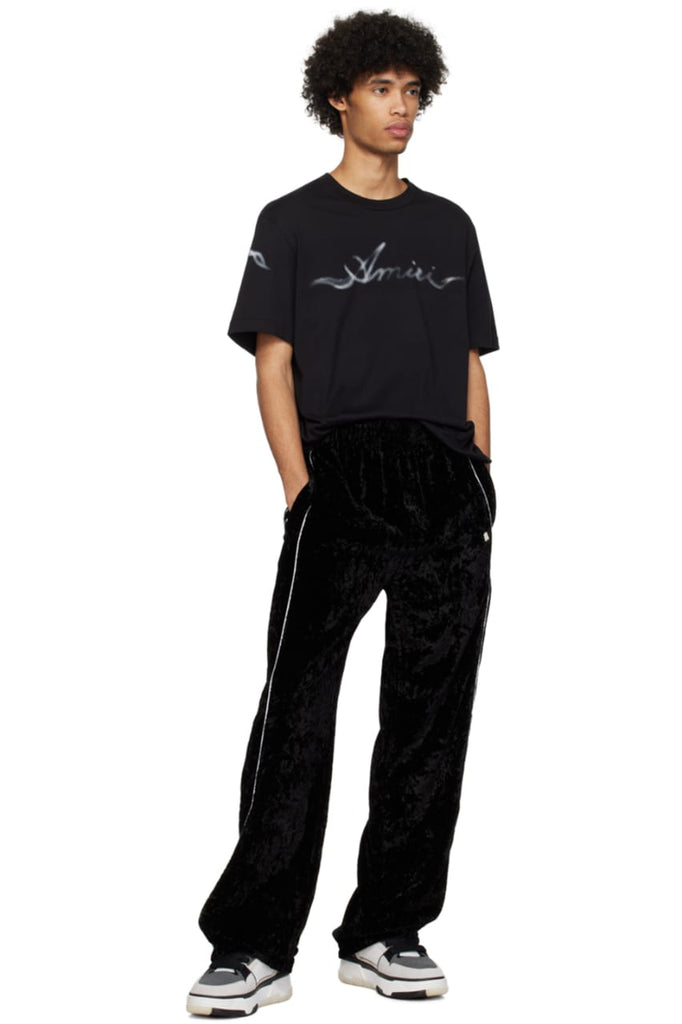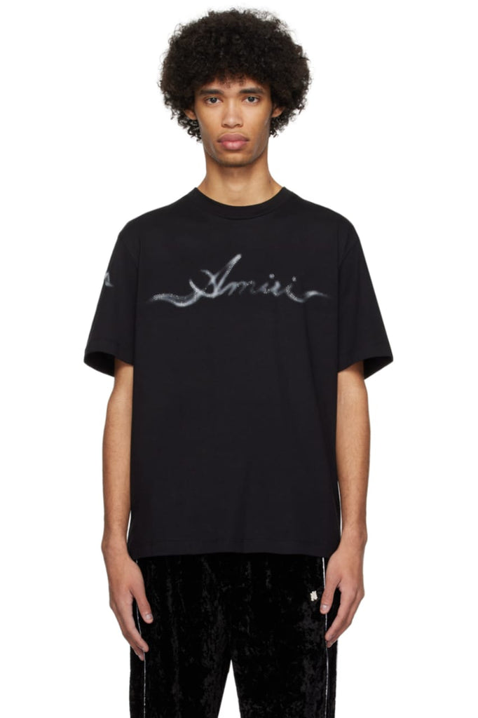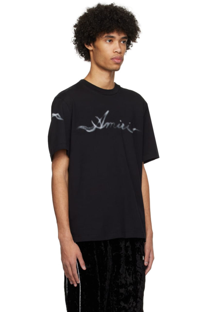 Luxury Smoke Logo Black Drop Shoulder Tee