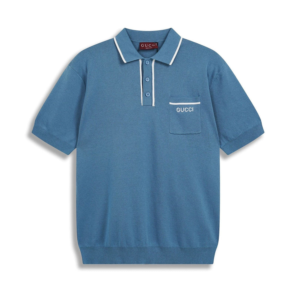 Men’s Blue Cotton Piqué Polo Shirt with Embroidered Pocket Logo
