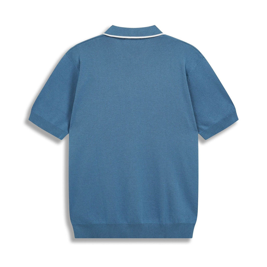 - Three-button placket, ribbed cuffs on sleeves, and a flat-knit collar for timeless appeal.