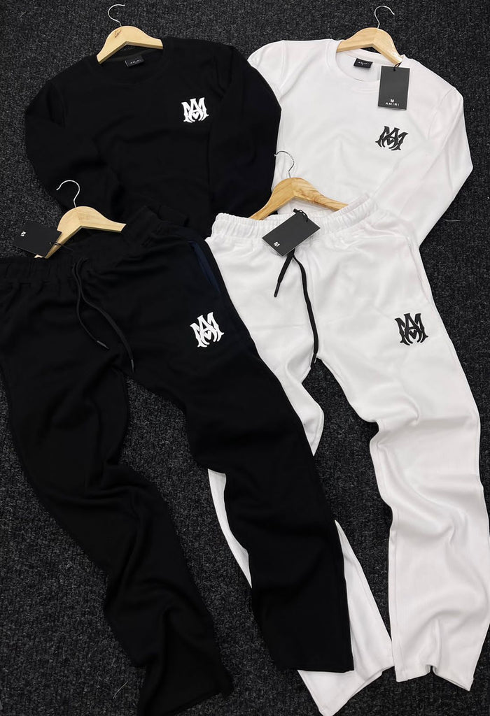 Classic long sleeves sweatshirt in black jersey cotton with Logo print on the chest available with track pants .