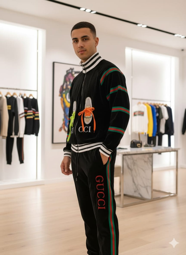 - Green and red stripes on the sleeves and sides for a classic designer look.