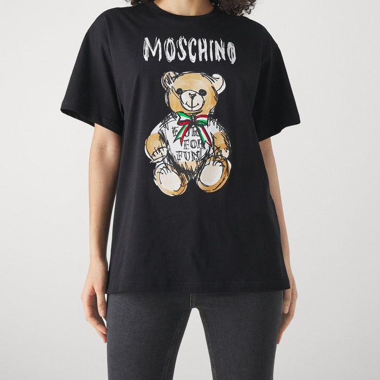T-shirt With Logo Print and Drawn-Effect Teddy Bear.