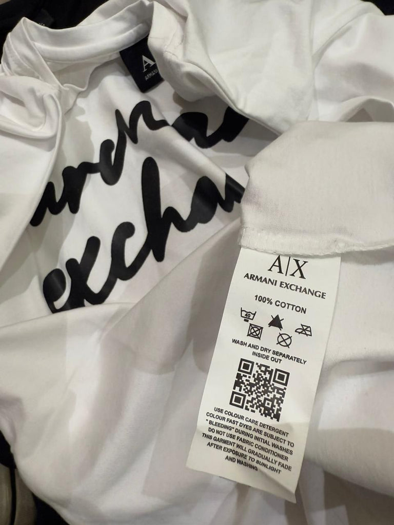 - Print design of the Armani Exchange lettering in a contrasting color.