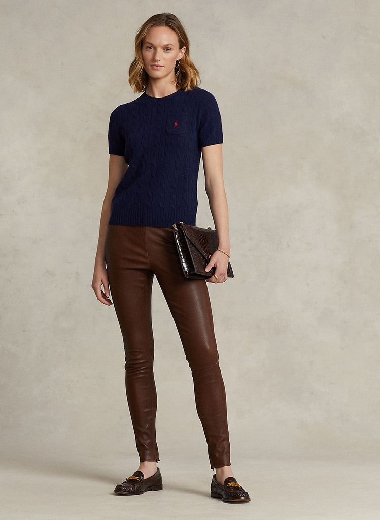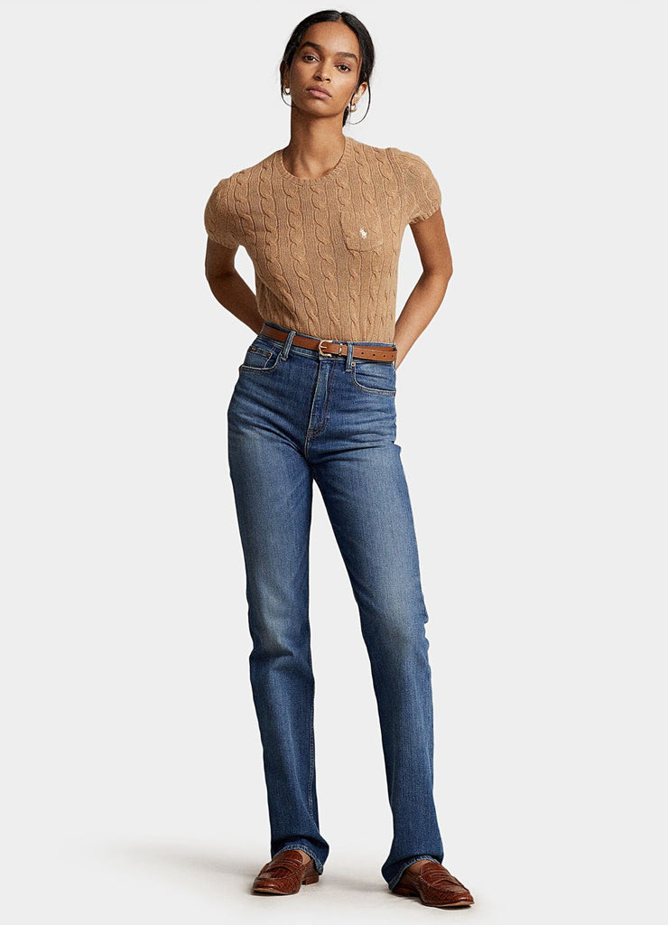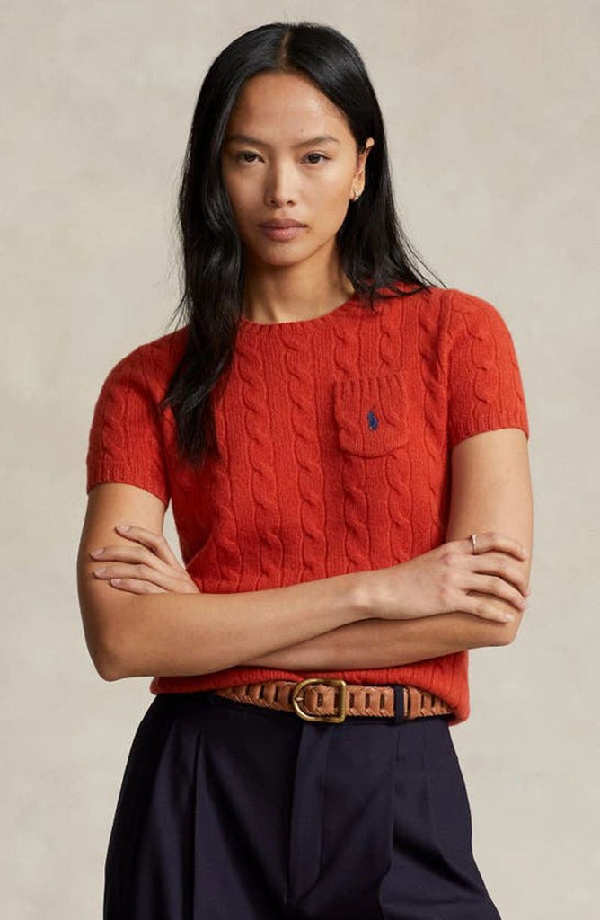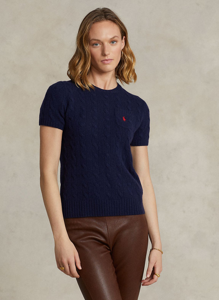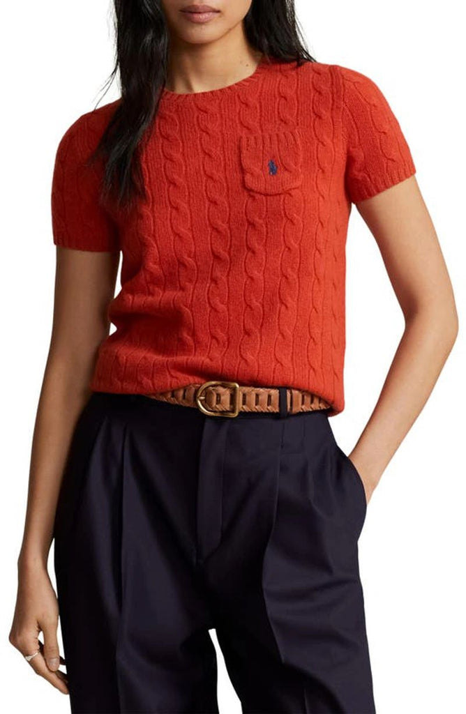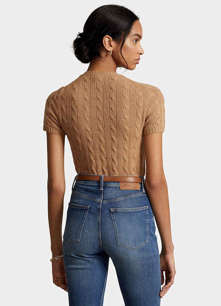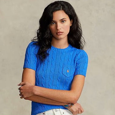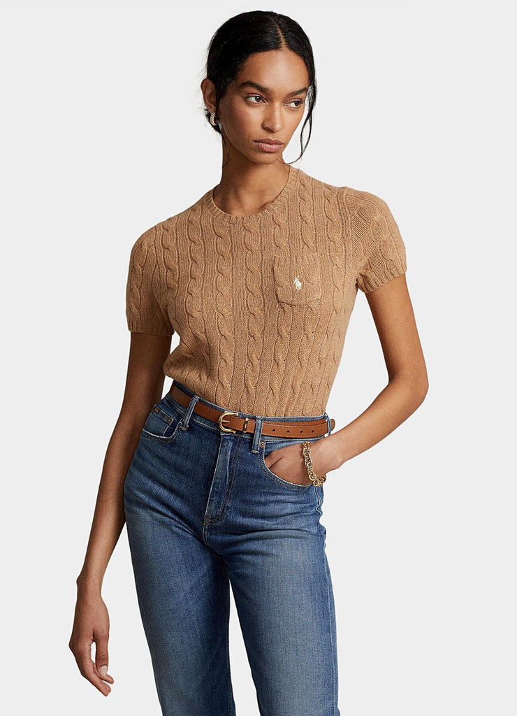 - Short sleeves with rib-knit cuffs. Rib-knit hem.
