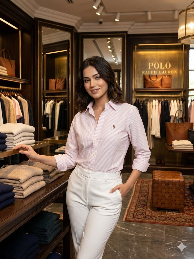 Women’s Light Pink Striped Shirt Classic Fit Casual Wear