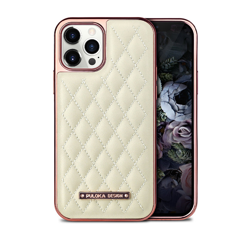 PULOKA Leather Diamond Design Electroplated Back Case for iPhone