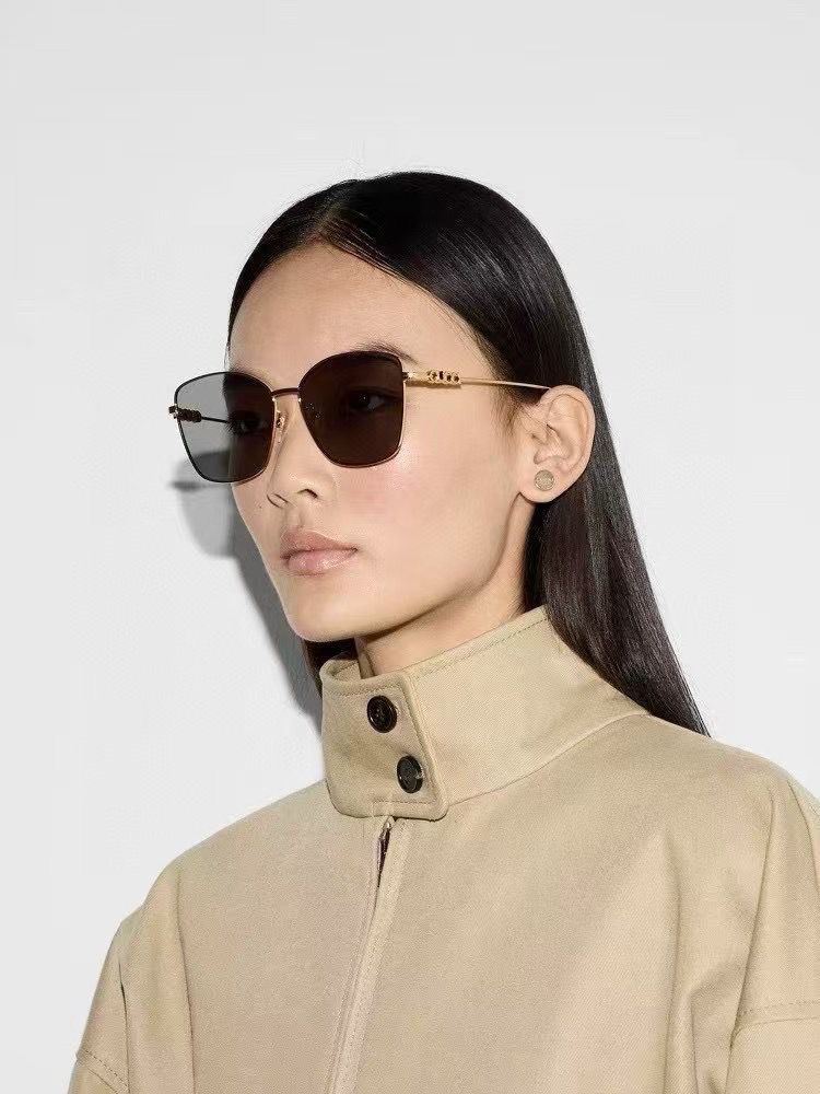 • Shiny gold-toned metal temples with cut-out brand logo and crystals