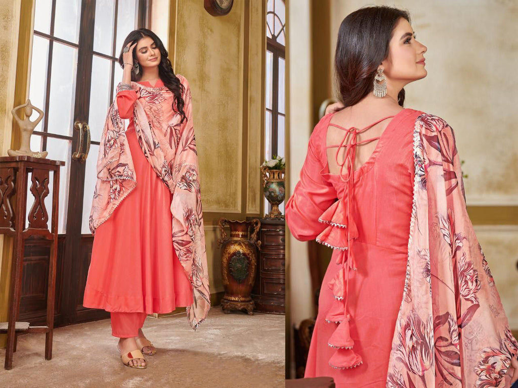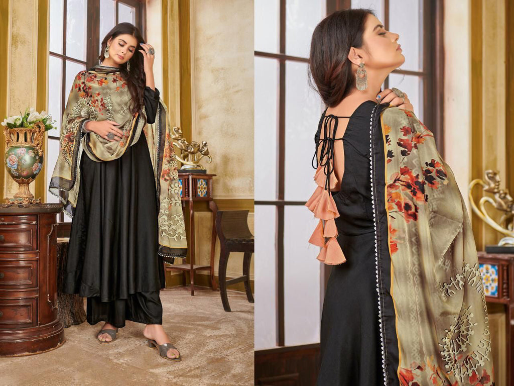 Fully Stitched Digital Printed Work Long Gown With Plazzo For Women.