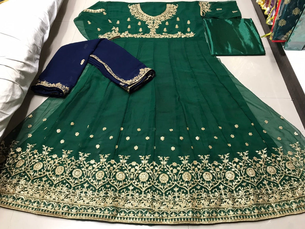 Semi-Stitched Heavy Georgette Suit With Embrodery and Diamond Stone Work