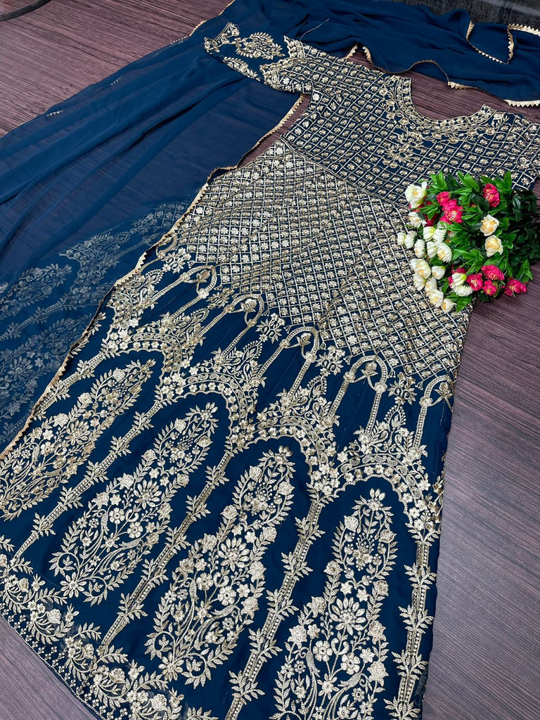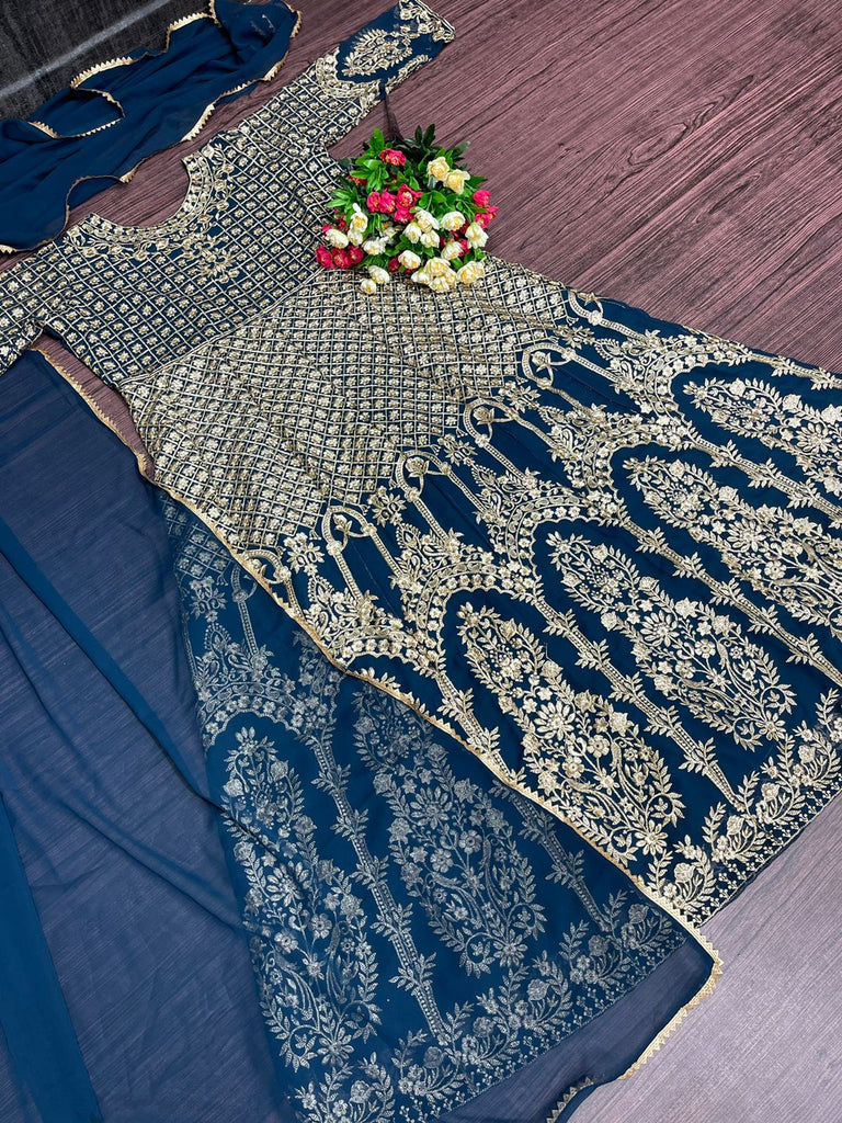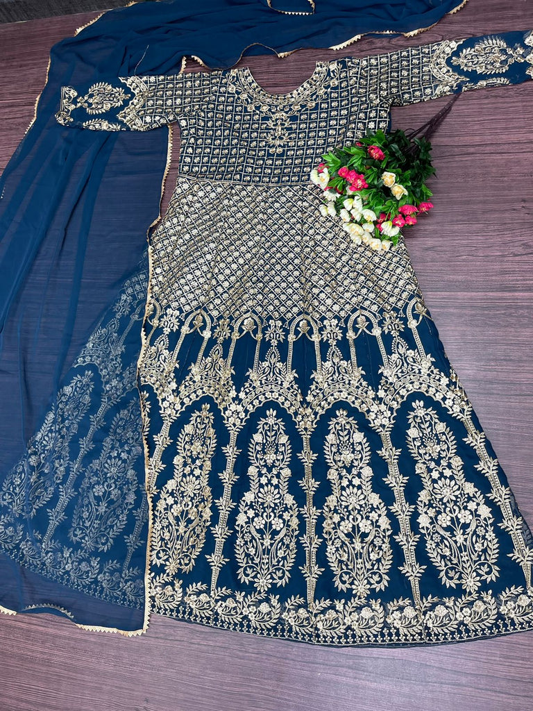 NEW DESIGNER PARTY WEAR GEORGETTE GOWN WITH HEAVY EMBROIDERY WORK