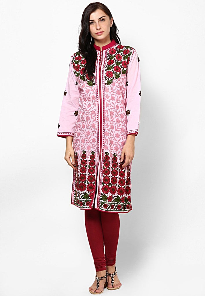 Ethnic Style Chikankari Lucknow embroidery kurtis with Georgette Fabric Chinese Collar. Size Chart M to XXXL which is 38 to 46 inches chest respectively. No Liinning Attached