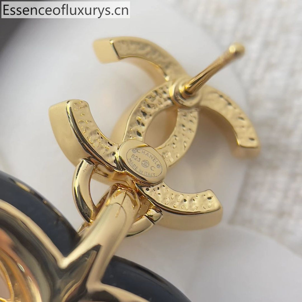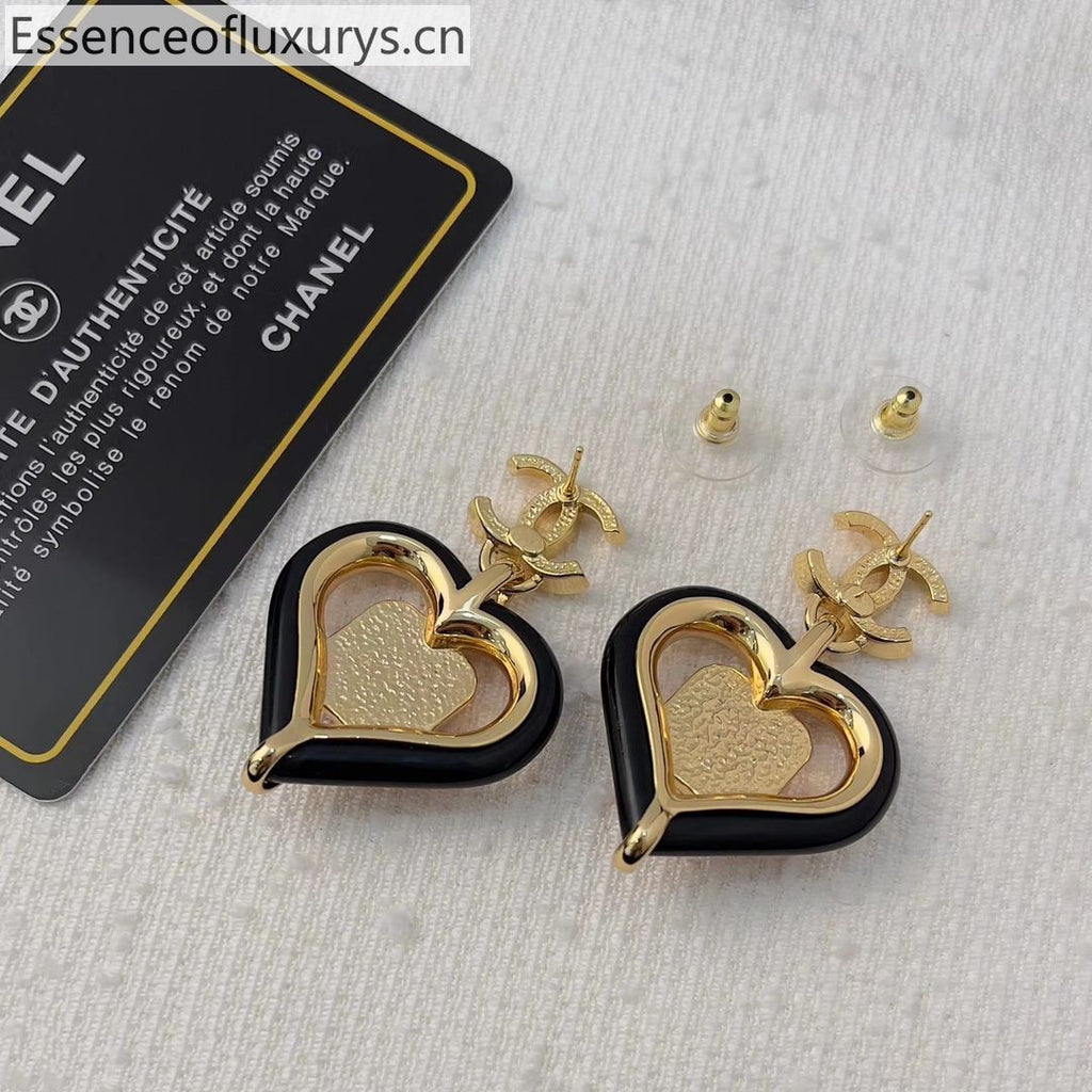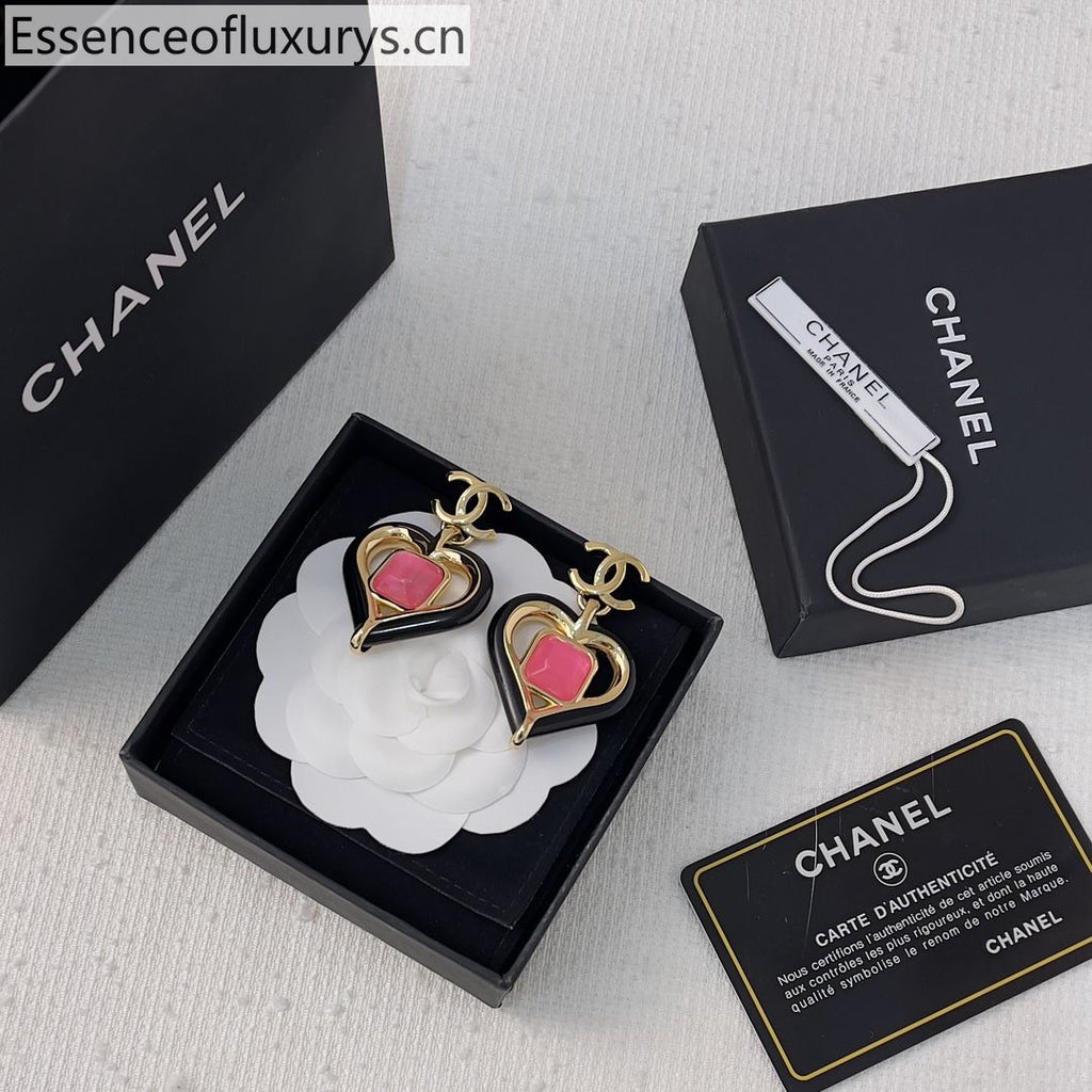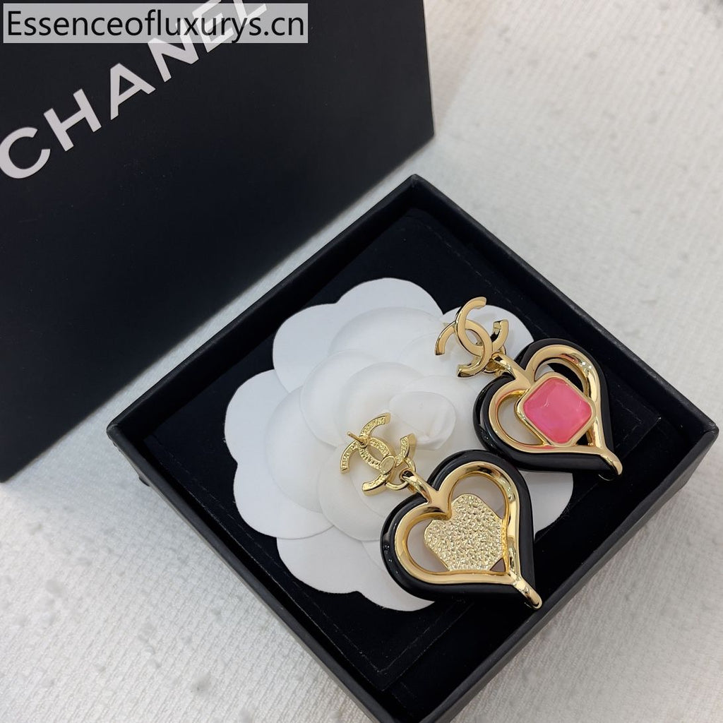 CC Gold Tone Heart Black Enamel Pink Resin Earrings