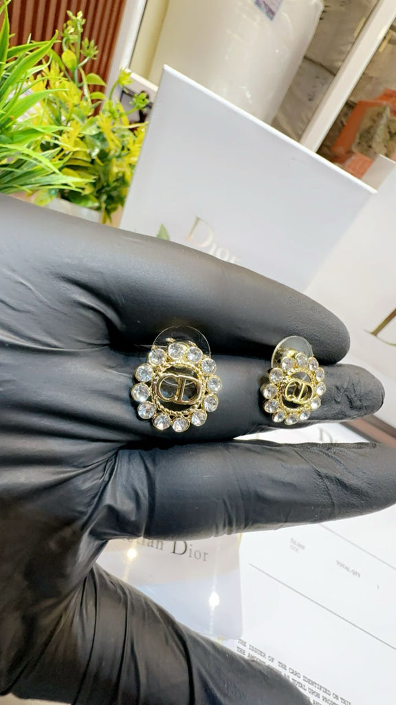 Gold-Finish Metal with White Resin Pearls and Silver-Tone Crystals