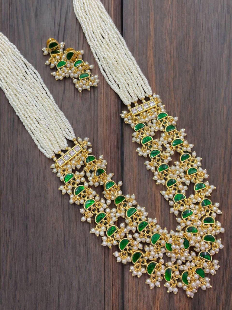 Gold Plated Traditional Kundan & Pearl Studded Long Chain Set