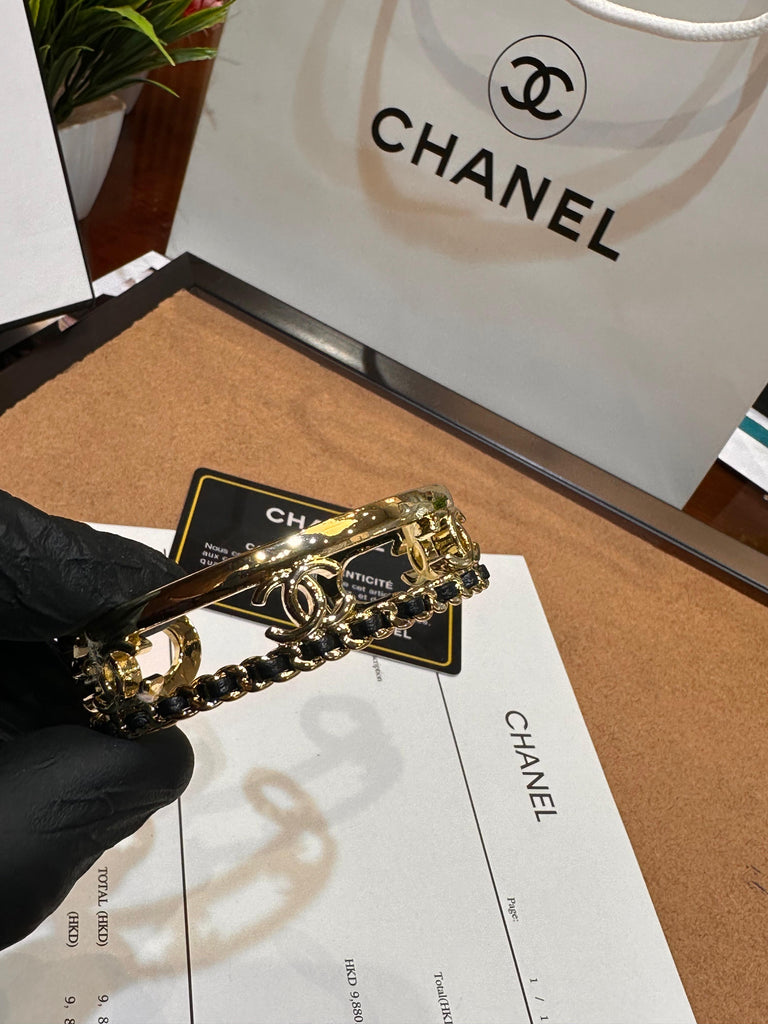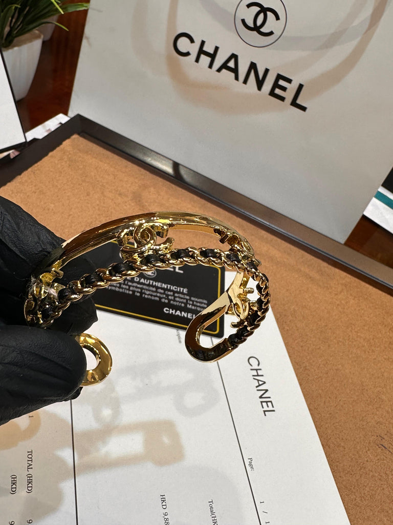 Lambskin Chain Design Cuff Bracelet Gold