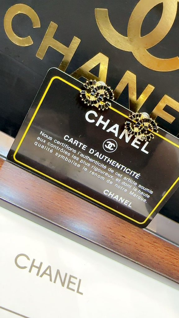 Premium Black Crystal  CC Stud Earrings