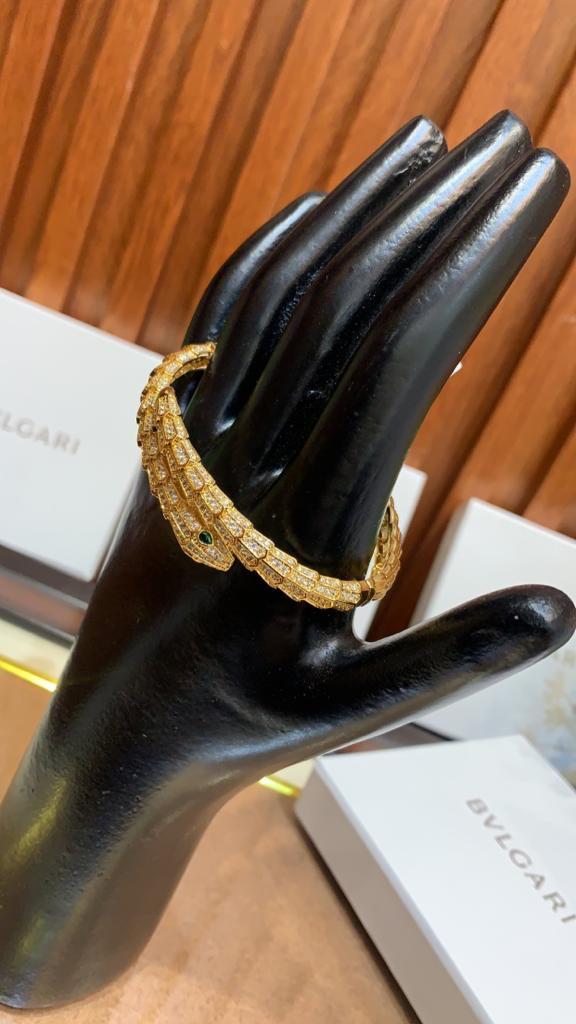 Premium Gold Bracelet Diamonds and Two Emerald Eyes