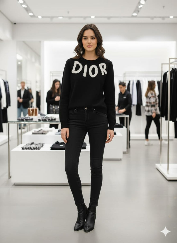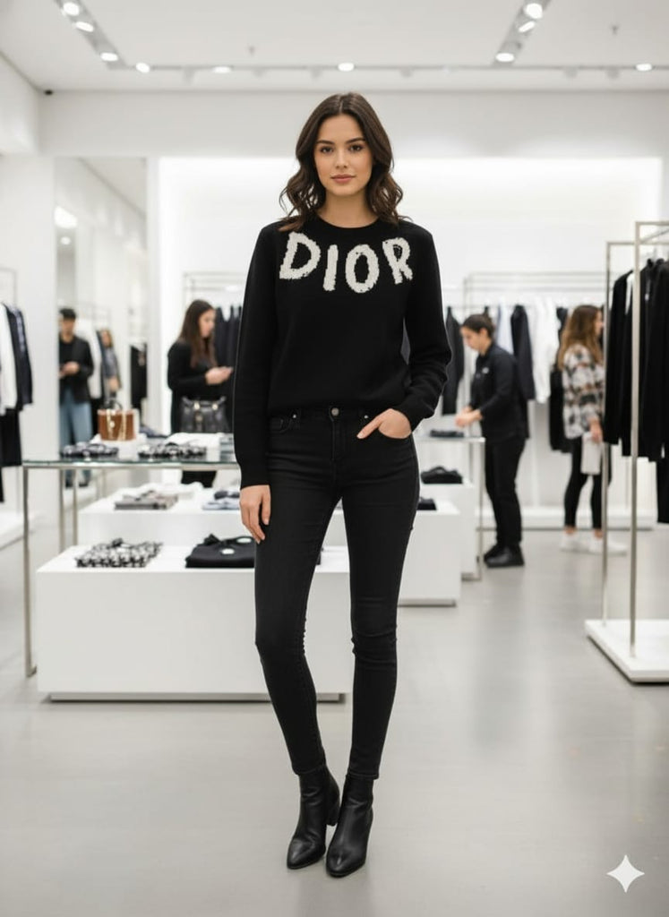 Men’s Black Luxury Knit  Pullover with Bold Logo Design