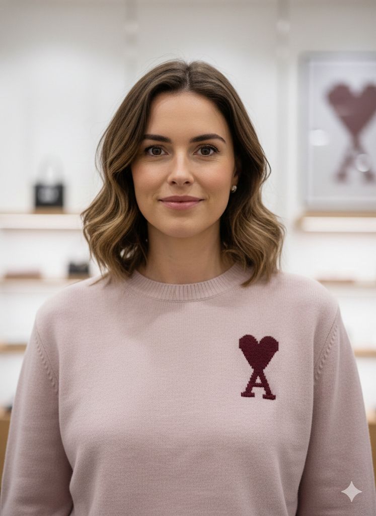 Cute heart-and-A logo on the chest for stylish branding