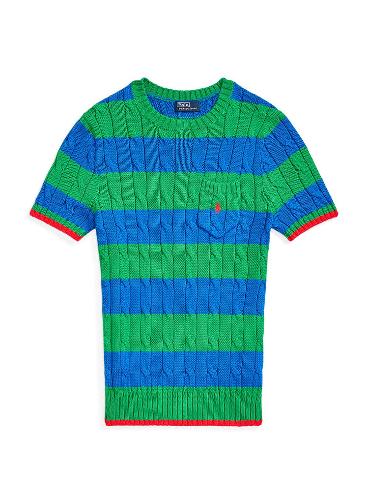 - this short-sleeve jumper is finished with two-tone stripes and our signature embroidered Pony on the chest pocket.