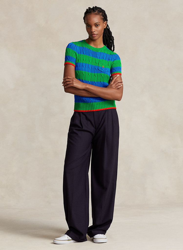 Striped Cable-Knit Cotton Jumper