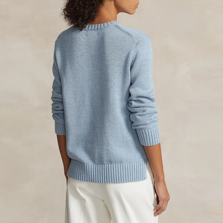 Women Light Blue Polo Bear Crewneck Sweater
