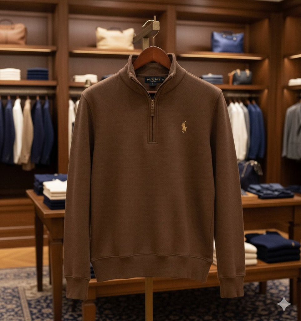 Women’s Classic Brown Quarter-Zip Pullover with Signature