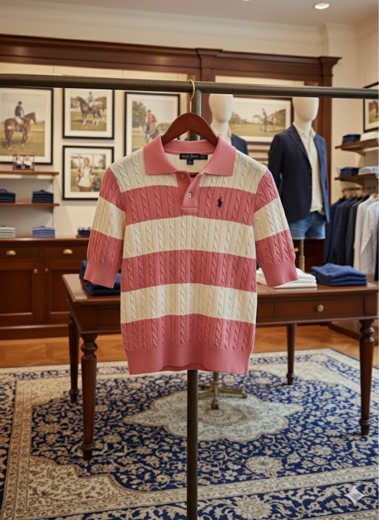 Women’s Pink & White Striped Cable-Knit Polo Tee