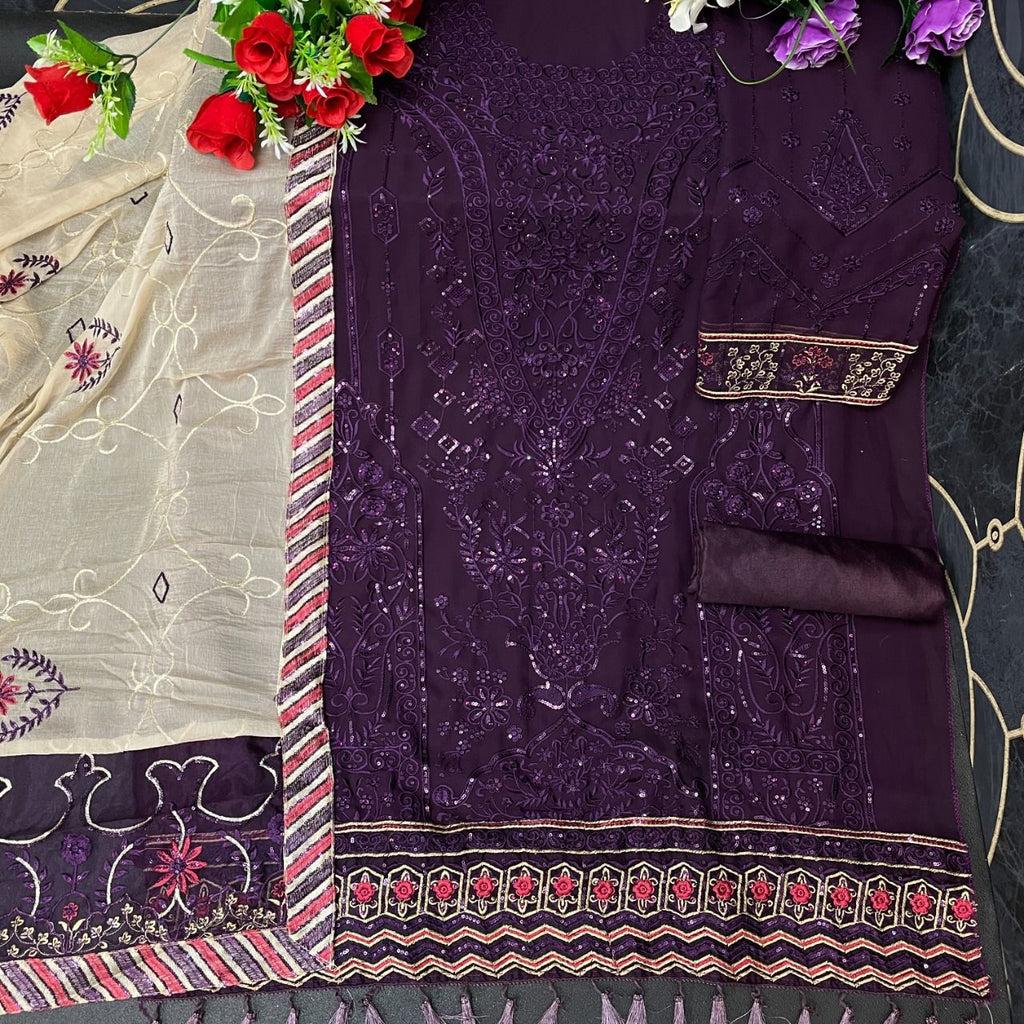 {Semi Stitched} Heavy Georgette With Embroidery Work With Hand Made Stone Work Suit.