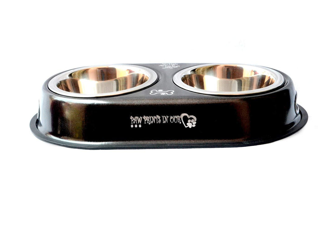 Double Diner Box Set Feed Your Pet in Unique Style. Attractive Feeding Bowl Double Dinner Box Set & 2 bowls removable with Holding Bracket is a strong, reliable and durable pet dish. Double Diner Box made up of High Quality Metal Sheet with Full powder Coating food grade & Printing. Bowls has a brilliant mirror finish Scratch proof Resistant to bite marks a closer look. Bowls are easily removable & easy to clean and wash. Double diner Box feature is that you can serve food & water (More Food) together. In the bottom of the Diner Box Anti Skid Rubber Base is made of Natural Rubber that's prevents skidding, slipping and also reduces noise while your pet eats. Made especially for, Cats/Dogs of all ages.