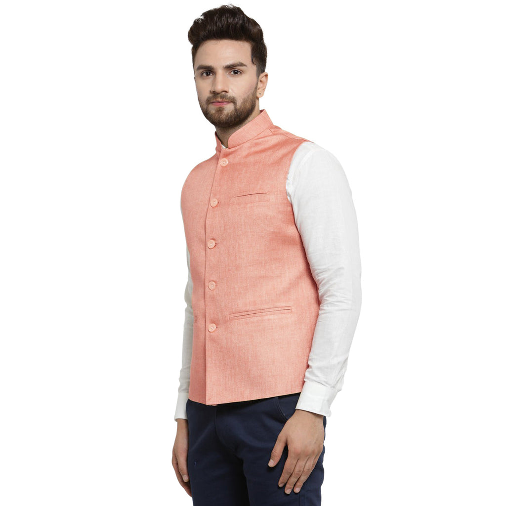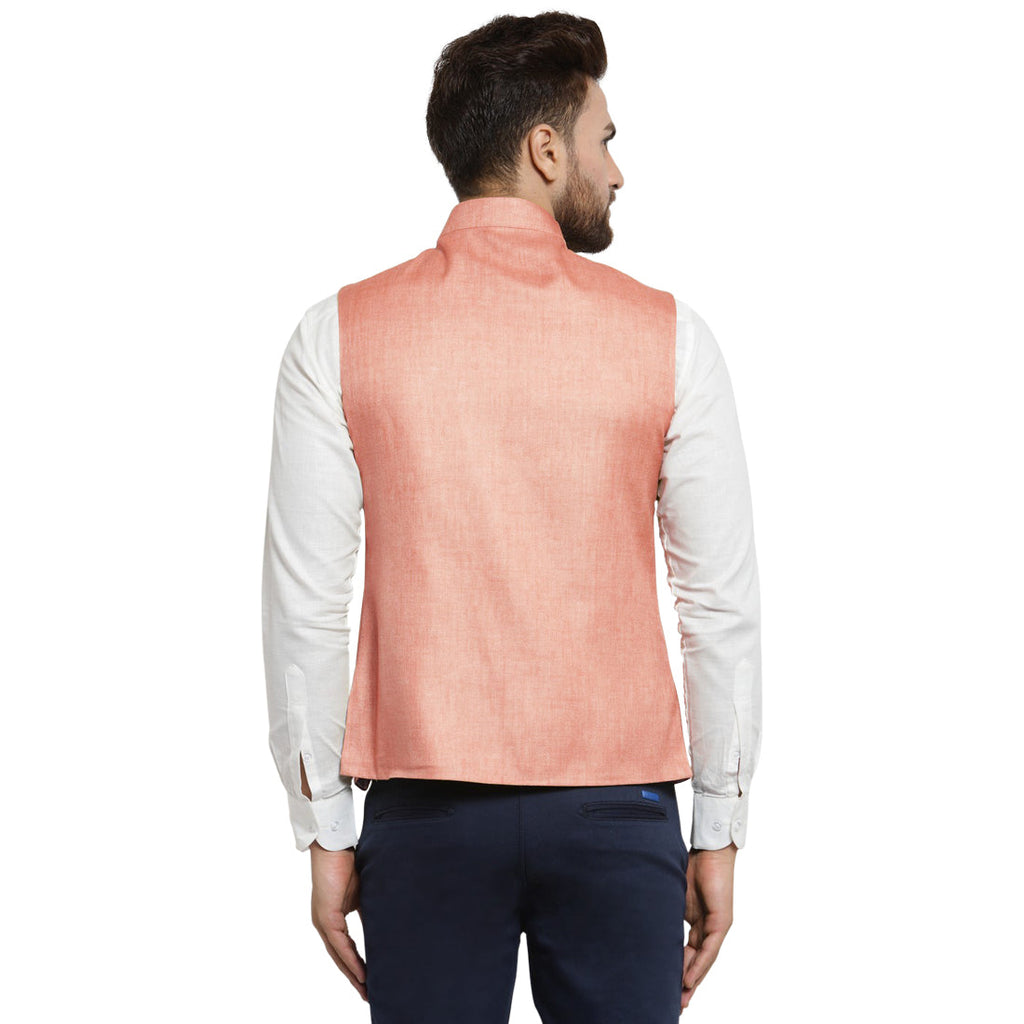 Luxury at Less Peach Nehru jacket For Men Stylish Latest Design Suitable for Ethnic Wear/Wedding Wear/ Formal Wear/Casual Wear