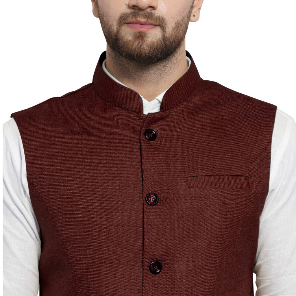 Luxury at Less Dark Brown Nehru jacket For Men Stylish Latest Design Suitable for Ethnic Wear/Wedding Wear/ Formal Wear/Casual Wear