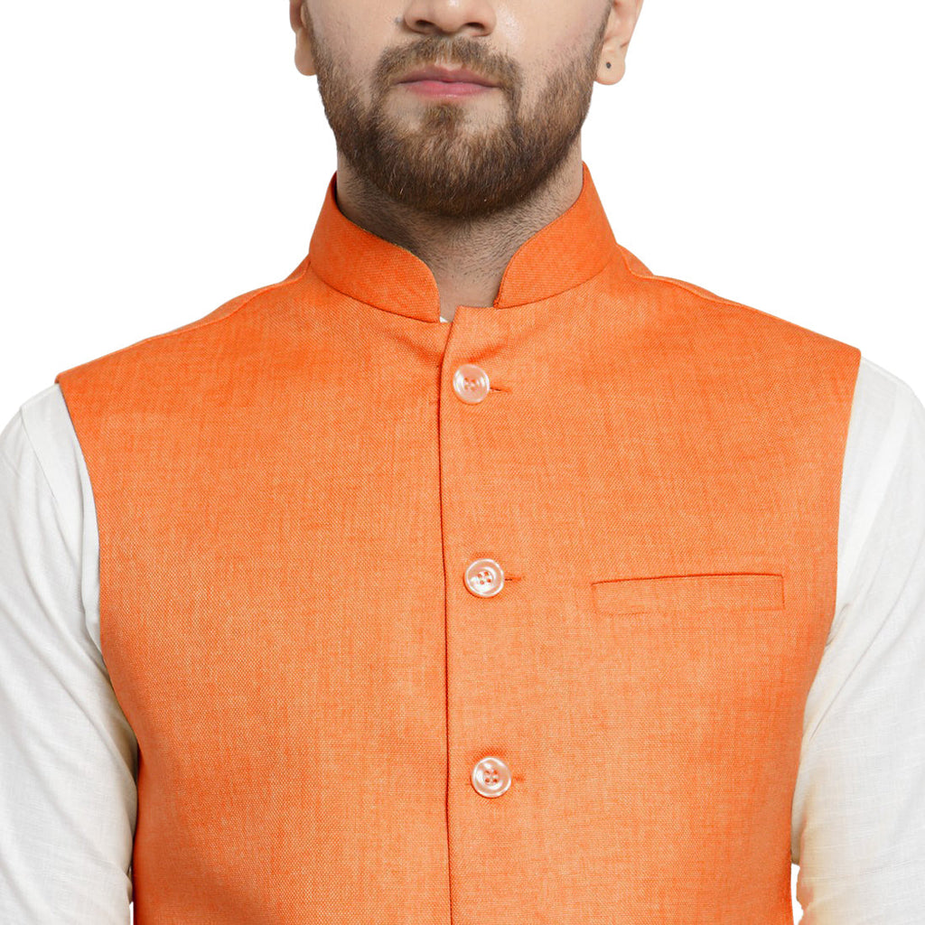 Luxury at Less Orange Tango Nehru jacket For Men Stylish Latest Design Suitable for Ethnic Wear/Wedding Wear/ Formal Wear/Casual Wear