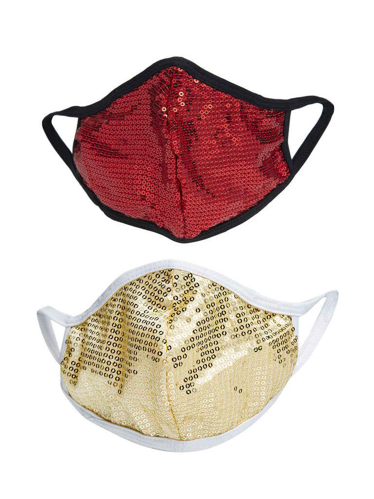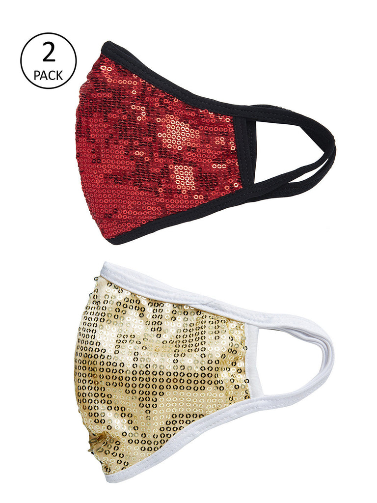 Red and Gold With Sparkling Glitter Sequin Women Fashion Reusable Face Mask (Pack of 2)