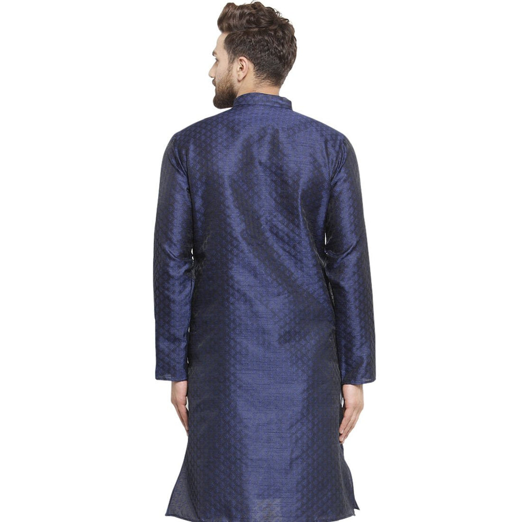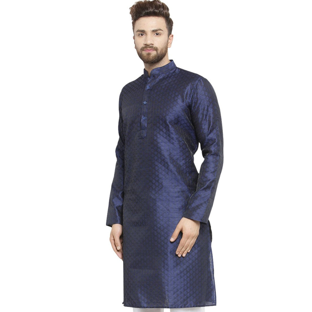 Embellished Brocade Kurta in Navy Blue By Luxury at Less