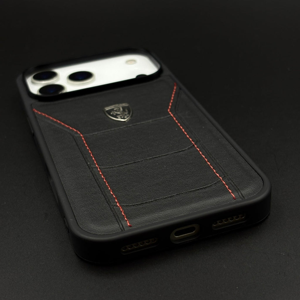Elevate your iPhone’s style and protection with this premium Black Leather Case. Crafted from high-quality genuine leather, it features bold red contrast stitching and the iconic Ferrari prancing horse emblem, showcasing sophistication and performance-inspired design. Designed for a precise fit, this case provides durable protection against scratches and drops while maintaining a slim, elegant profile — perfect for those who appreciate luxury, function, and automotive-inspired craftsmanship.