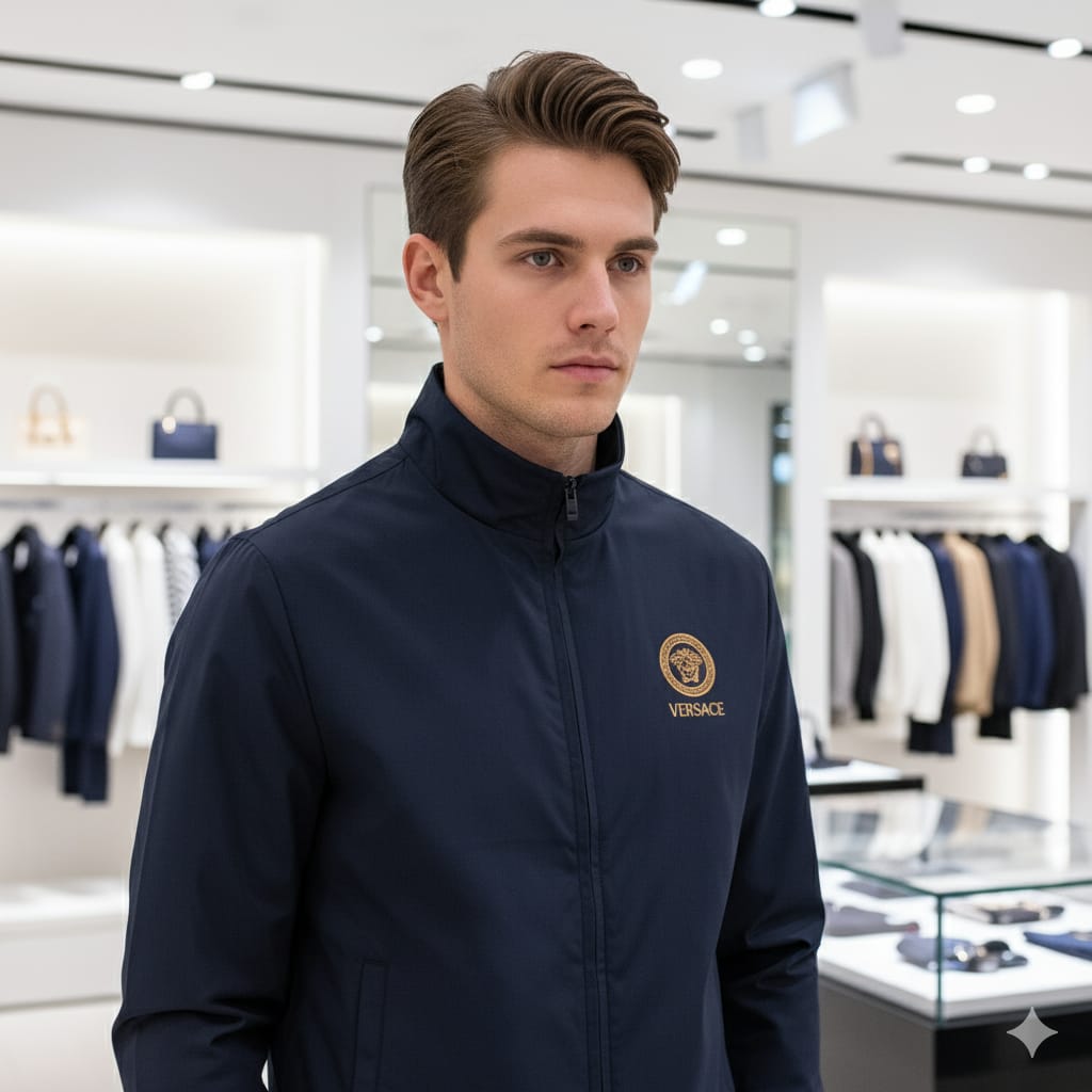 - This premium white zip-up jacket exudes refined luxury and modern sophistication