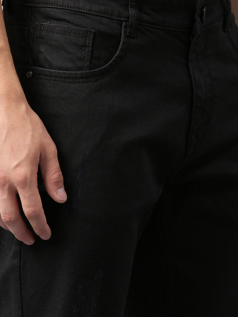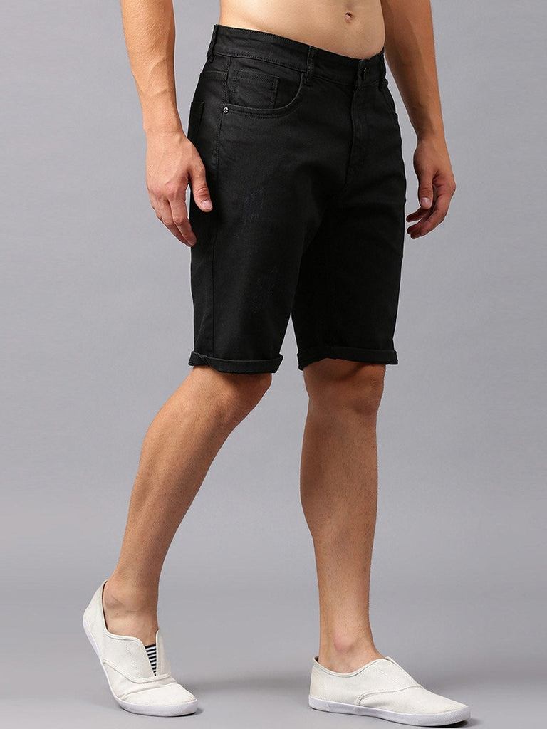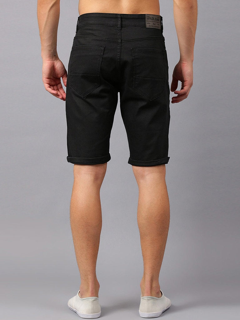 Men Black Solid Slim Fit Denim Shorts