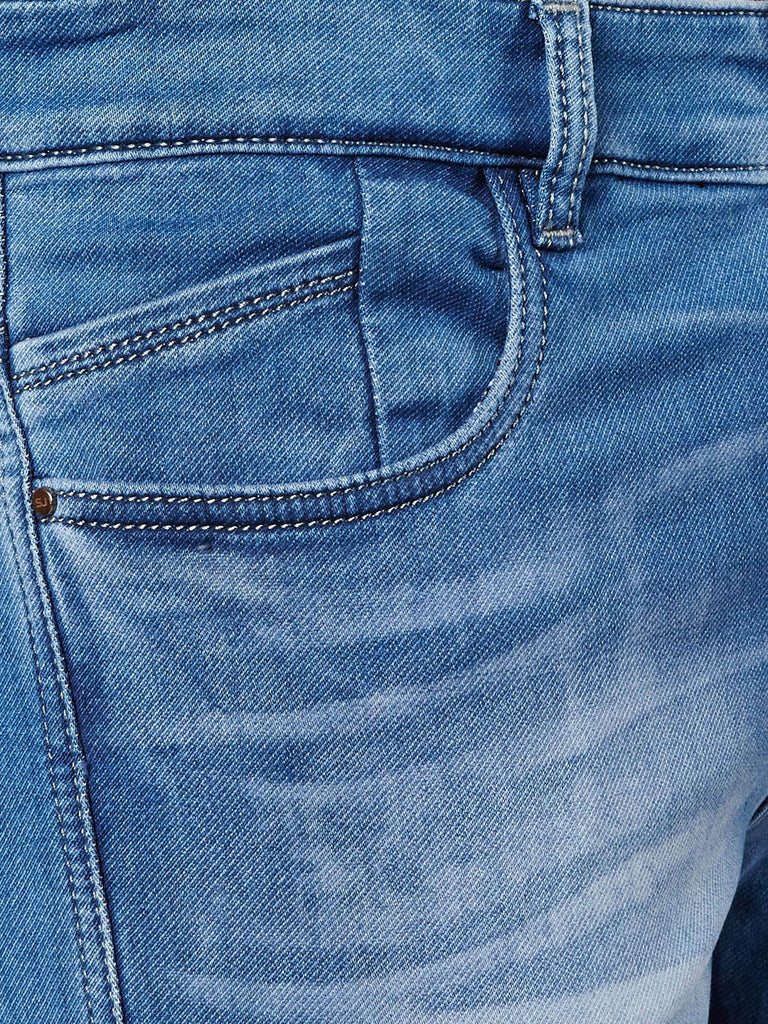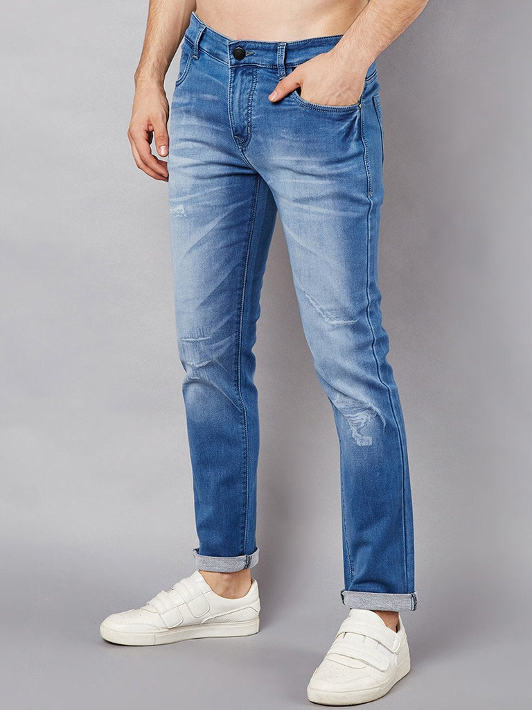 Men Blue Slim Fit Mid-Rise Low Distress Stretchable Jeans