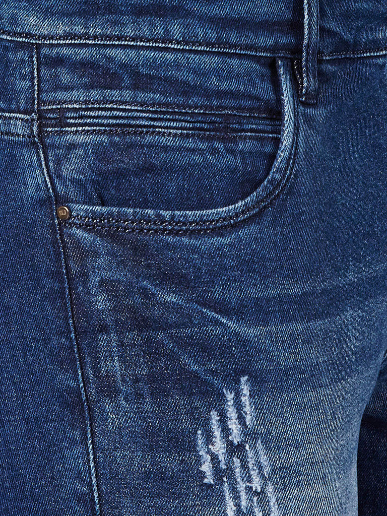 Men Blue Slim Fit Mid-Rise Mildly Distressed Stretchable Jeans
