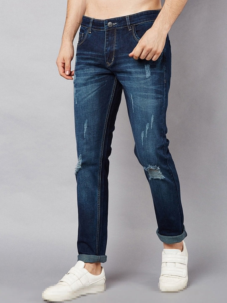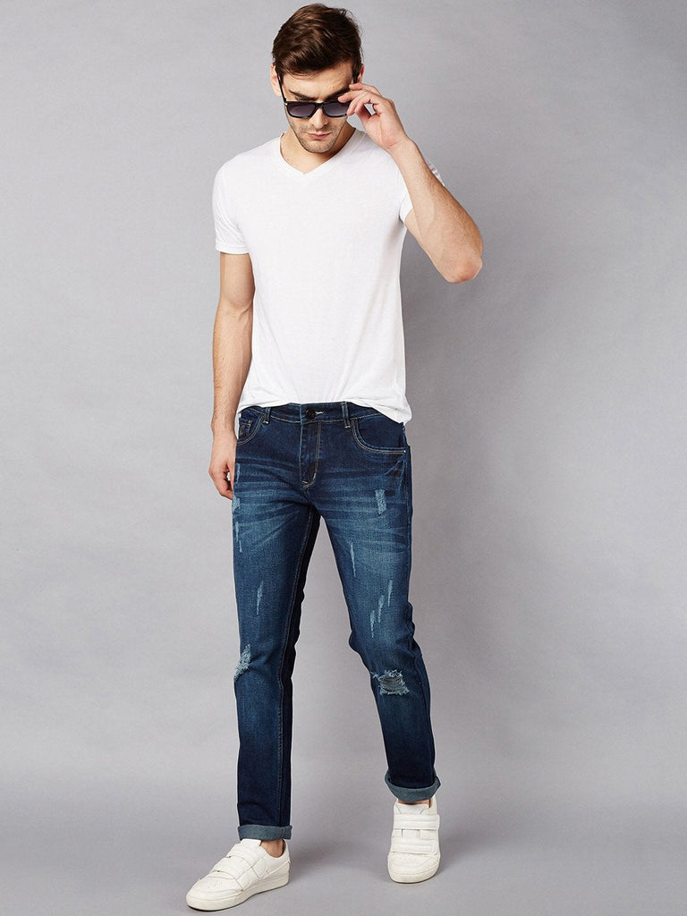 Men Navy Blue Slim Fit Mid-Rise Mildly Distressed Stretchable Jeans