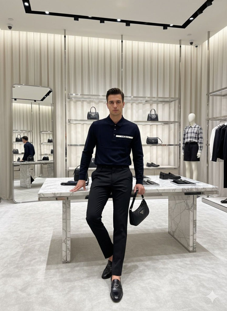 Navy Blue Luxury Polo Shirt Iconic Minimalist Elegance