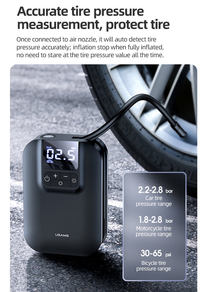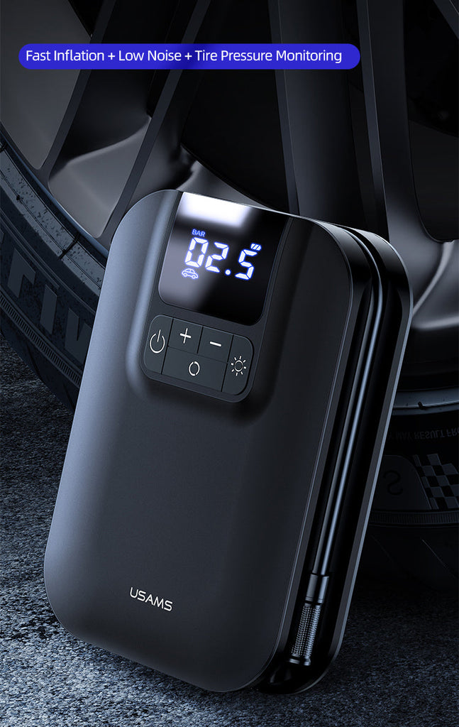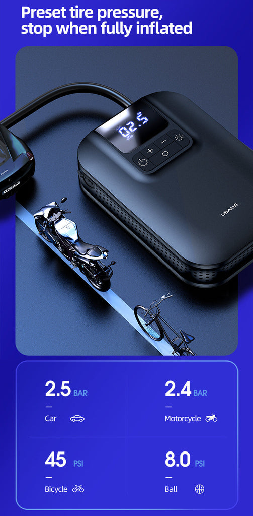 USAMS Mini Portable Air Compressor Pump with LED Light For Car, Bike, Bicycle, Motorcycles, Balls and More